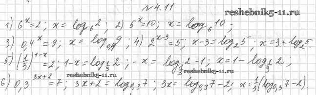 Готовая домашняя работа с ответами по Алгебре за 11 класс Мерзляк, Номировский, Поляков Учебник Алгоритм успеха Углубленный уровень Вентана-граф 2019 ФГОС - §4. Логарифм и его свойства 4.11