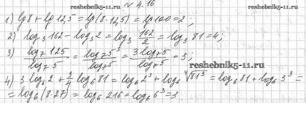 Готовая домашняя работа с ответами по Алгебре за 11 класс Мерзляк, Номировский, Поляков Учебник Алгоритм успеха Углубленный уровень Вентана-граф 2019 ФГОС - §4. Логарифм и его свойства 4.16
