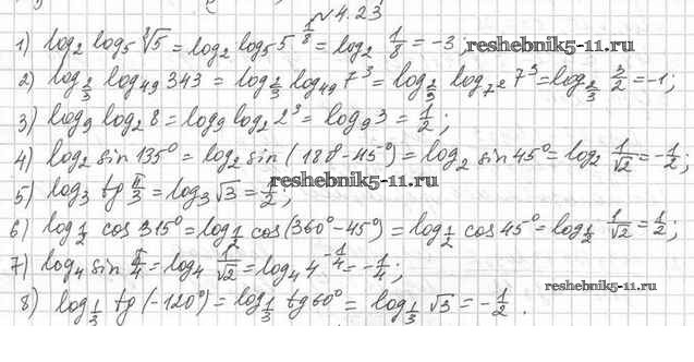 Готовая домашняя работа с ответами по Алгебре за 11 класс Мерзляк, Номировский, Поляков Учебник Алгоритм успеха Углубленный уровень Вентана-граф 2019 ФГОС - §4. Логарифм и его свойства 4.23