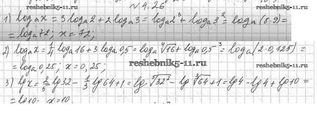 Готовая домашняя работа с ответами по Алгебре за 11 класс Мерзляк, Номировский, Поляков Учебник Алгоритм успеха Углубленный уровень Вентана-граф 2019 ФГОС - §4. Логарифм и его свойства 4.26