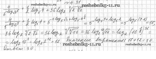 Готовая домашняя работа с ответами по Алгебре за 11 класс Мерзляк, Номировский, Поляков Учебник Алгоритм успеха Углубленный уровень Вентана-граф 2019 ФГОС - §4. Логарифм и его свойства 4.31