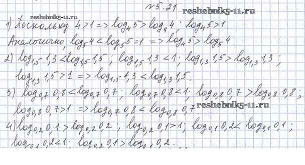 Готовая домашняя работа с ответами по Алгебре за 11 класс Мерзляк, Номировский, Поляков Учебник Алгоритм успеха Углубленный уровень Вентана-граф 2019 ФГОС - §5. Логарифмическая функция и её свойства 5.21