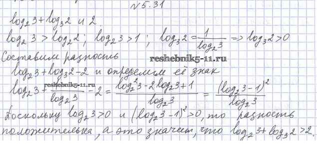 Готовая домашняя работа с ответами по Алгебре за 11 класс Мерзляк, Номировский, Поляков Учебник Алгоритм успеха Углубленный уровень Вентана-граф 2019 ФГОС - §5. Логарифмическая функция и её свойства 5.31