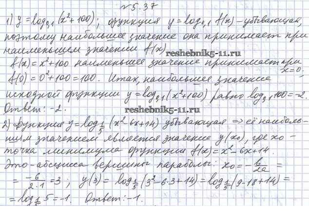 Готовая домашняя работа с ответами по Алгебре за 11 класс Мерзляк, Номировский, Поляков Учебник Алгоритм успеха Углубленный уровень Вентана-граф 2019 ФГОС - §5. Логарифмическая функция и её свойства 5.37