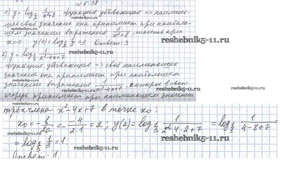 Готовая домашняя работа с ответами по Алгебре за 11 класс Мерзляк, Номировский, Поляков Учебник Алгоритм успеха Углубленный уровень Вентана-граф 2019 ФГОС - §5. Логарифмическая функция и её свойства 5.38