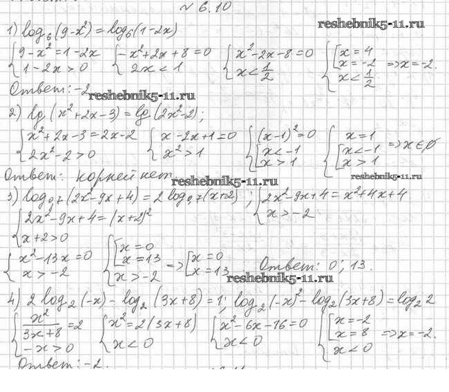 Готовая домашняя работа с ответами по Алгебре за 11 класс Мерзляк, Номировский, Поляков Учебник Алгоритм успеха Углубленный уровень Вентана-граф 2019 ФГОС - §6. Логарифмические уравнения 6.10