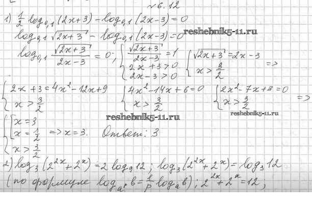 Готовая домашняя работа с ответами по Алгебре за 11 класс Мерзляк, Номировский, Поляков Учебник Алгоритм успеха Углубленный уровень Вентана-граф 2019 ФГОС - §6. Логарифмические уравнения 6.12