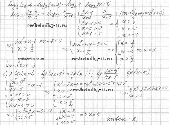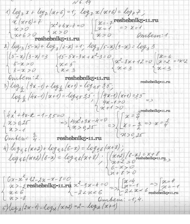 Готовая домашняя работа с ответами по Алгебре за 11 класс Мерзляк, Номировский, Поляков Учебник Алгоритм успеха Углубленный уровень Вентана-граф 2019 ФГОС - §6. Логарифмические уравнения 6.14