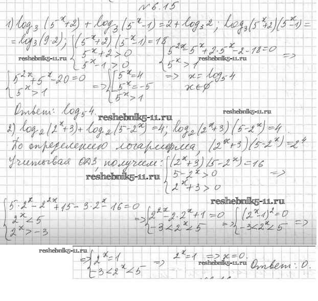 Готовая домашняя работа с ответами по Алгебре за 11 класс Мерзляк, Номировский, Поляков Учебник Алгоритм успеха Углубленный уровень Вентана-граф 2019 ФГОС - §6. Логарифмические уравнения 6.15