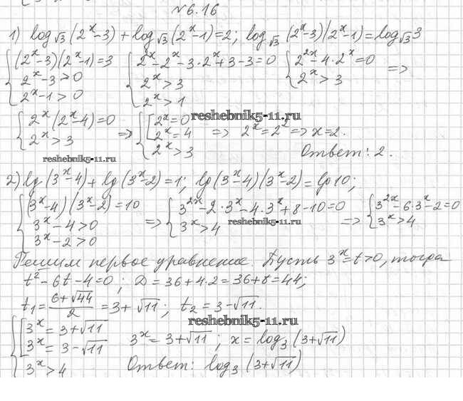 Готовая домашняя работа с ответами по Алгебре за 11 класс Мерзляк, Номировский, Поляков Учебник Алгоритм успеха Углубленный уровень Вентана-граф 2019 ФГОС - §6. Логарифмические уравнения 6.16
