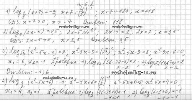 Готовая домашняя работа с ответами по Алгебре за 11 класс Мерзляк, Номировский, Поляков Учебник Алгоритм успеха Углубленный уровень Вентана-граф 2019 ФГОС - §6. Логарифмические уравнения 6.2