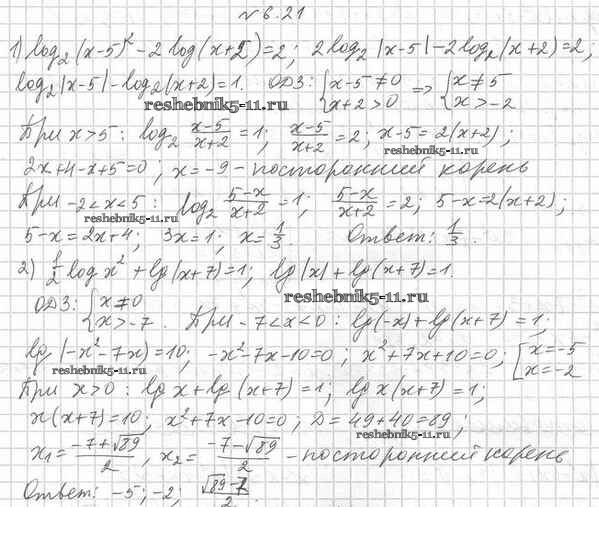 Готовая домашняя работа с ответами по Алгебре за 11 класс Мерзляк, Номировский, Поляков Учебник Алгоритм успеха Углубленный уровень Вентана-граф 2019 ФГОС - §6. Логарифмические уравнения 6.21