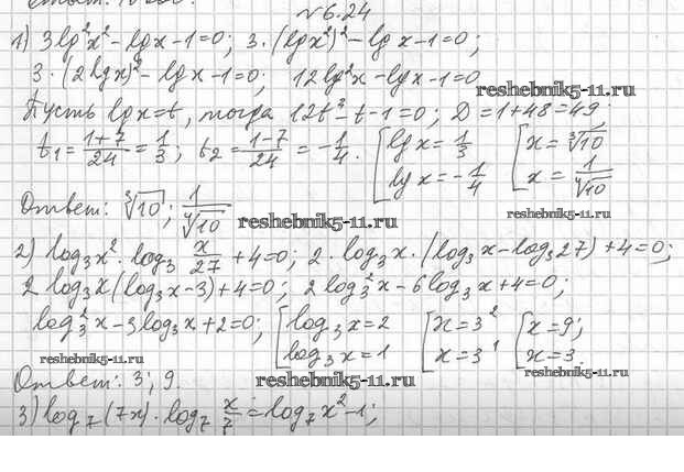 Готовая домашняя работа с ответами по Алгебре за 11 класс Мерзляк, Номировский, Поляков Учебник Алгоритм успеха Углубленный уровень Вентана-граф 2019 ФГОС - §6. Логарифмические уравнения 6.24