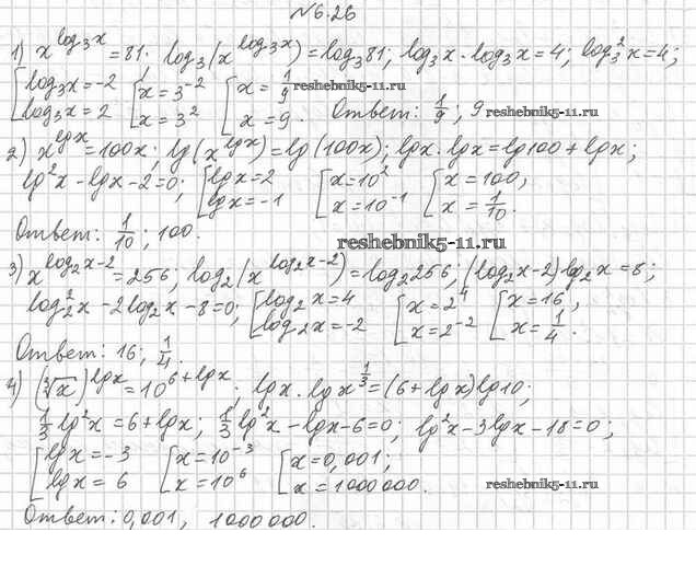 Готовая домашняя работа с ответами по Алгебре за 11 класс Мерзляк, Номировский, Поляков Учебник Алгоритм успеха Углубленный уровень Вентана-граф 2019 ФГОС - §6. Логарифмические уравнения 6.26