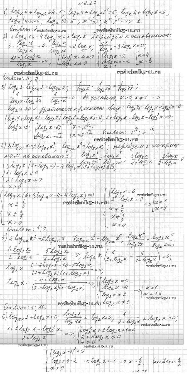 Готовая домашняя работа с ответами по Алгебре за 11 класс Мерзляк, Номировский, Поляков Учебник Алгоритм успеха Углубленный уровень Вентана-граф 2019 ФГОС - §6. Логарифмические уравнения 6.27