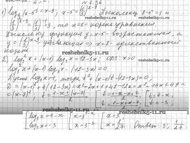 Готовая домашняя работа с ответами по Алгебре за 11 класс Мерзляк, Номировский, Поляков Учебник Алгоритм успеха Углубленный уровень Вентана-граф 2019 ФГОС - §6. Логарифмические уравнения 6.36