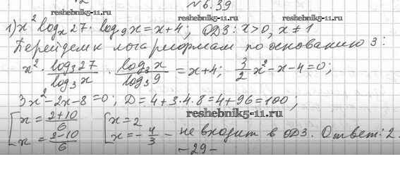 Готовая домашняя работа с ответами по Алгебре за 11 класс Мерзляк, Номировский, Поляков Учебник Алгоритм успеха Углубленный уровень Вентана-граф 2019 ФГОС - §6. Логарифмические уравнения 6.39