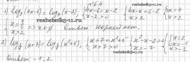 Готовая домашняя работа с ответами по Алгебре за 11 класс Мерзляк, Номировский, Поляков Учебник Алгоритм успеха Углубленный уровень Вентана-граф 2019 ФГОС - §6. Логарифмические уравнения 6.4