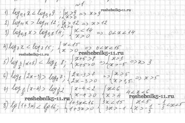 Готовая домашняя работа с ответами по Алгебре за 11 класс Мерзляк, Номировский, Поляков Учебник Алгоритм успеха Углубленный уровень Вентана-граф 2019 ФГОС - §7. Логарифмические неравенства 7.1