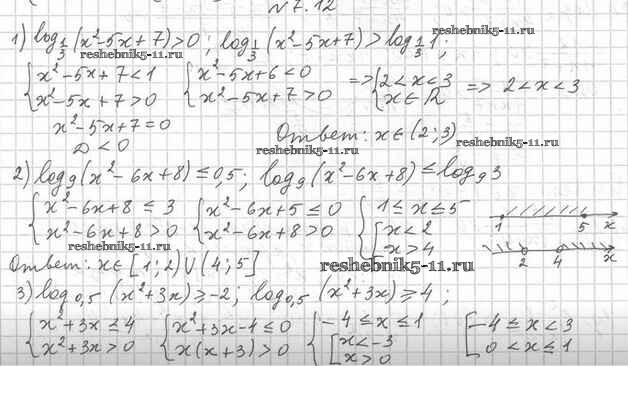Готовая домашняя работа с ответами по Алгебре за 11 класс Мерзляк, Номировский, Поляков Учебник Алгоритм успеха Углубленный уровень Вентана-граф 2019 ФГОС - §7. Логарифмические неравенства 7.12