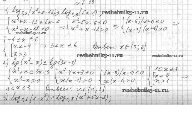 Готовая домашняя работа с ответами по Алгебре за 11 класс Мерзляк, Номировский, Поляков Учебник Алгоритм успеха Углубленный уровень Вентана-граф 2019 ФГОС - §7. Логарифмические неравенства 7.13