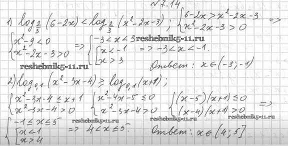 Готовая домашняя работа с ответами по Алгебре за 11 класс Мерзляк, Номировский, Поляков Учебник Алгоритм успеха Углубленный уровень Вентана-граф 2019 ФГОС - §7. Логарифмические неравенства 7.14