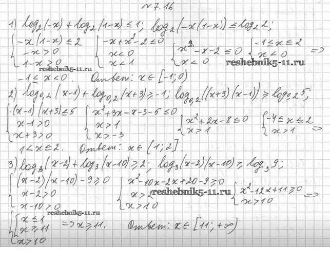 Готовая домашняя работа с ответами по Алгебре за 11 класс Мерзляк, Номировский, Поляков Учебник Алгоритм успеха Углубленный уровень Вентана-граф 2019 ФГОС - §7. Логарифмические неравенства 7.16