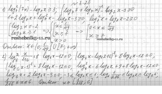 Готовая домашняя работа с ответами по Алгебре за 11 класс Мерзляк, Номировский, Поляков Учебник Алгоритм успеха Углубленный уровень Вентана-граф 2019 ФГОС - §7. Логарифмические неравенства 7.20