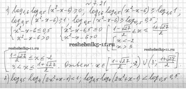 Готовая домашняя работа с ответами по Алгебре за 11 класс Мерзляк, Номировский, Поляков Учебник Алгоритм успеха Углубленный уровень Вентана-граф 2019 ФГОС - §7. Логарифмические неравенства 7.21