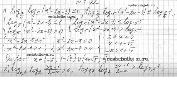 Готовая домашняя работа с ответами по Алгебре за 11 класс Мерзляк, Номировский, Поляков Учебник Алгоритм успеха Углубленный уровень Вентана-граф 2019 ФГОС - §7. Логарифмические неравенства 7.22