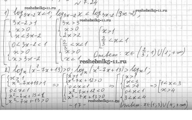 Готовая домашняя работа с ответами по Алгебре за 11 класс Мерзляк, Номировский, Поляков Учебник Алгоритм успеха Углубленный уровень Вентана-граф 2019 ФГОС - §7. Логарифмические неравенства 7.24