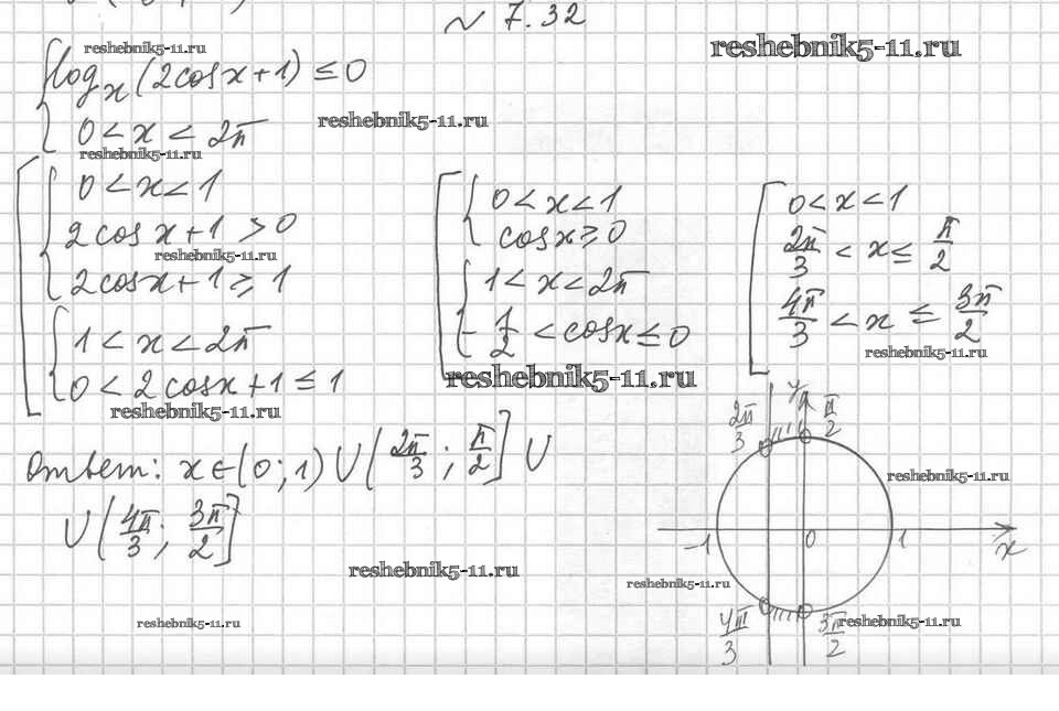 Готовая домашняя работа с ответами по Алгебре за 11 класс Мерзляк, Номировский, Поляков Учебник Алгоритм успеха Углубленный уровень Вентана-граф 2019 ФГОС - §7. Логарифмические неравенства 7.32