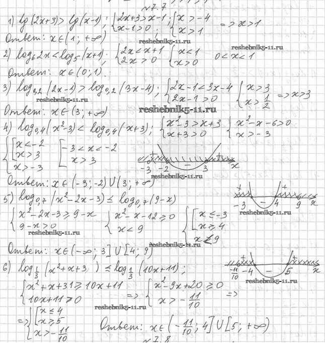 Готовая домашняя работа с ответами по Алгебре за 11 класс Мерзляк, Номировский, Поляков Учебник Алгоритм успеха Углубленный уровень Вентана-граф 2019 ФГОС - §7. Логарифмические неравенства 7.7
