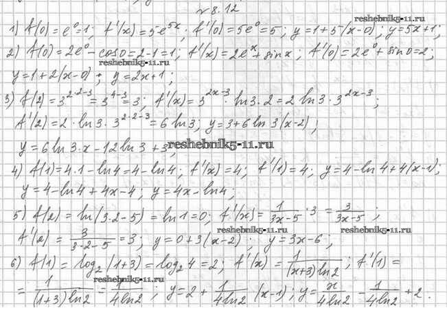 Готовая домашняя работа с ответами по Алгебре за 11 класс Мерзляк, Номировский, Поляков Учебник Алгоритм успеха Углубленный уровень Вентана-граф 2019 ФГОС - §8. Производные показательной и логарифмической функций 8.12
