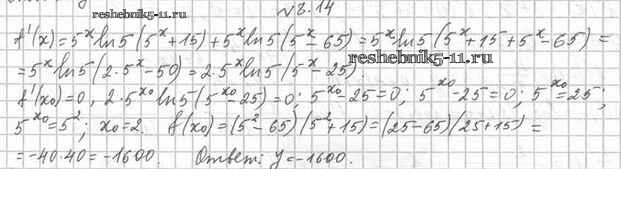 Готовая домашняя работа с ответами по Алгебре за 11 класс Мерзляк, Номировский, Поляков Учебник Алгоритм успеха Углубленный уровень Вентана-граф 2019 ФГОС - §8. Производные показательной и логарифмической функций 8.14