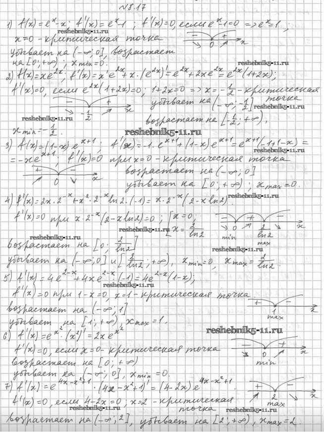 Готовая домашняя работа с ответами по Алгебре за 11 класс Мерзляк, Номировский, Поляков Учебник Алгоритм успеха Углубленный уровень Вентана-граф 2019 ФГОС - §8. Производные показательной и логарифмической функций 8.17