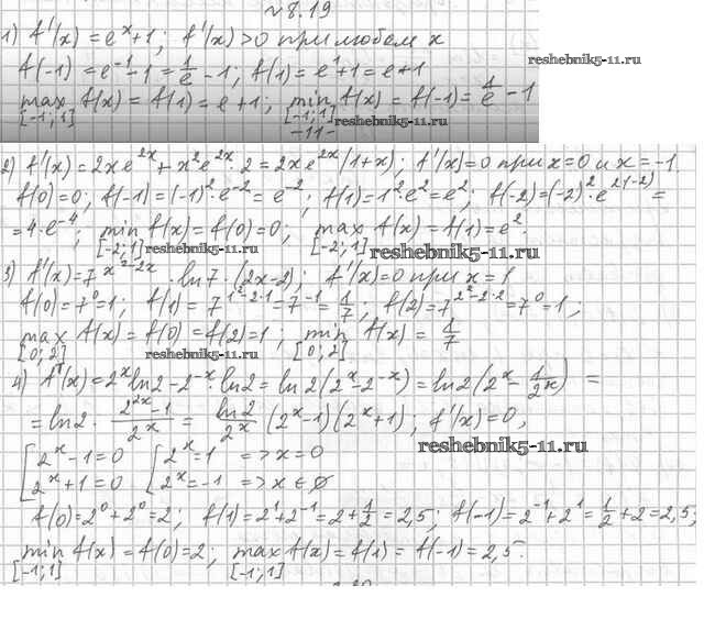 Готовая домашняя работа с ответами по Алгебре за 11 класс Мерзляк, Номировский, Поляков Учебник Алгоритм успеха Углубленный уровень Вентана-граф 2019 ФГОС - §8. Производные показательной и логарифмической функций 8.19