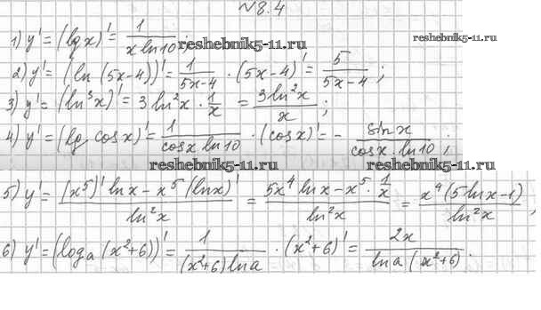 Готовая домашняя работа с ответами по Алгебре за 11 класс Мерзляк, Номировский, Поляков Учебник Алгоритм успеха Углубленный уровень Вентана-граф 2019 ФГОС - §8. Производные показательной и логарифмической функций 8.4