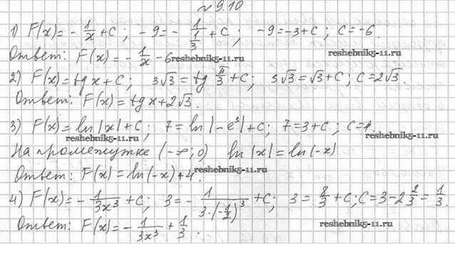 Готовая домашняя работа с ответами по Алгебре за 11 класс Мерзляк, Номировский, Поляков Учебник Алгоритм успеха Углубленный уровень Вентана-граф 2019 ФГОС - §9. Первообразная 9.10