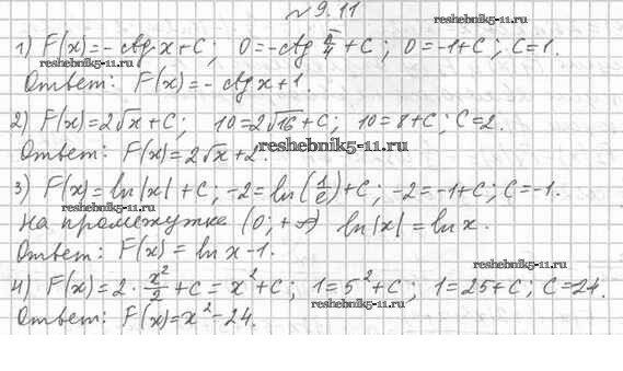 Готовая домашняя работа с ответами по Алгебре за 11 класс Мерзляк, Номировский, Поляков Учебник Алгоритм успеха Углубленный уровень Вентана-граф 2019 ФГОС - §9. Первообразная 9.11