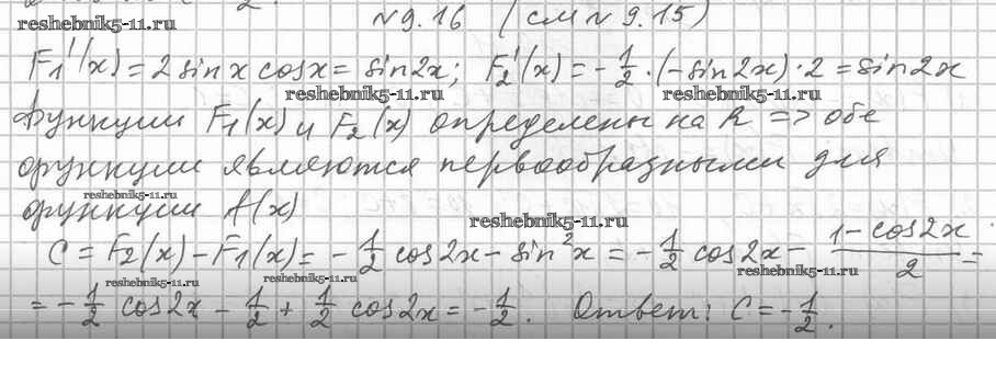 Готовая домашняя работа с ответами по Алгебре за 11 класс Мерзляк, Номировский, Поляков Учебник Алгоритм успеха Углубленный уровень Вентана-граф 2019 ФГОС - §9. Первообразная 9.16