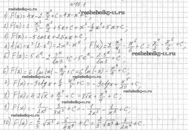 Готовая домашняя работа с ответами по Алгебре за 11 класс Мерзляк, Номировский, Поляков Учебник Алгоритм успеха Углубленный уровень Вентана-граф 2019 ФГОС - §10. Правила нахождения первообразной 10.1