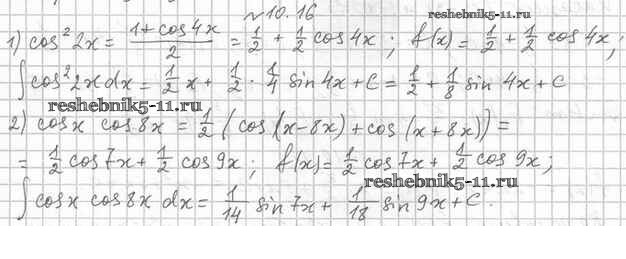 Готовая домашняя работа с ответами по Алгебре за 11 класс Мерзляк, Номировский, Поляков Учебник Алгоритм успеха Углубленный уровень Вентана-граф 2019 ФГОС - §10. Правила нахождения первообразной 10.16