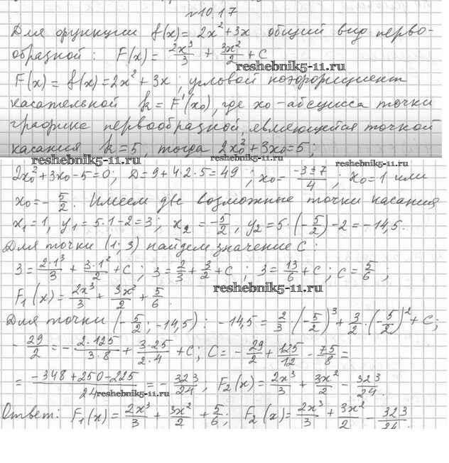 Готовая домашняя работа с ответами по Алгебре за 11 класс Мерзляк, Номировский, Поляков Учебник Алгоритм успеха Углубленный уровень Вентана-граф 2019 ФГОС - §10. Правила нахождения первообразной 10.17