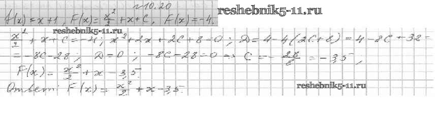Готовая домашняя работа с ответами по Алгебре за 11 класс Мерзляк, Номировский, Поляков Учебник Алгоритм успеха Углубленный уровень Вентана-граф 2019 ФГОС - §10. Правила нахождения первообразной 10.20