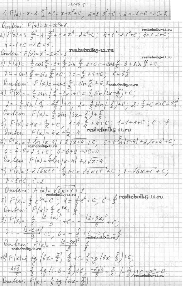 Готовая домашняя работа с ответами по Алгебре за 11 класс Мерзляк, Номировский, Поляков Учебник Алгоритм успеха Углубленный уровень Вентана-граф 2019 ФГОС - §10. Правила нахождения первообразной 10.5