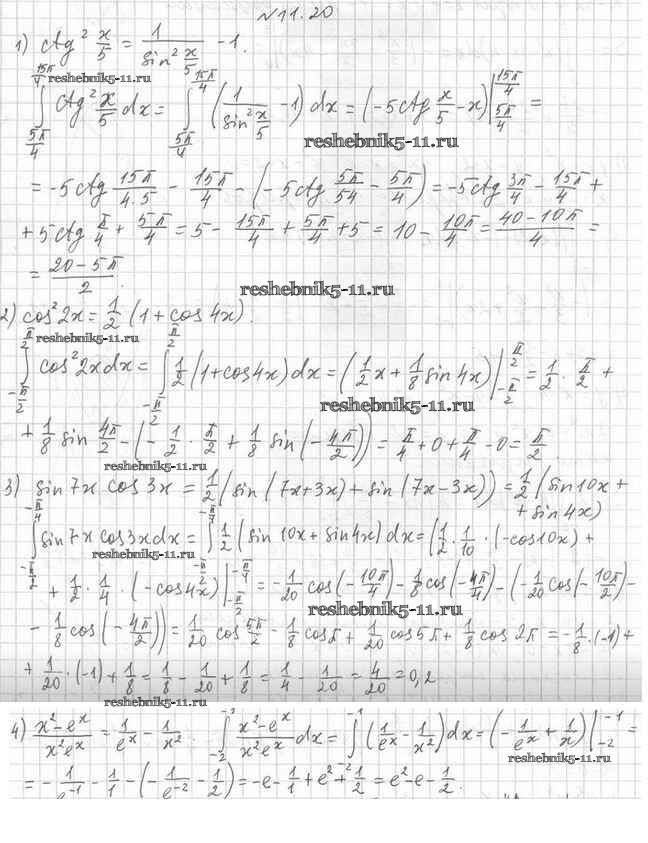 Готовая домашняя работа с ответами по Алгебре за 11 класс Мерзляк, Номировский, Поляков Учебник Алгоритм успеха Углубленный уровень Вентана-граф 2019 ФГОС - §11. Площадь криволинейной трапеции. Определённый интеграл 11.20