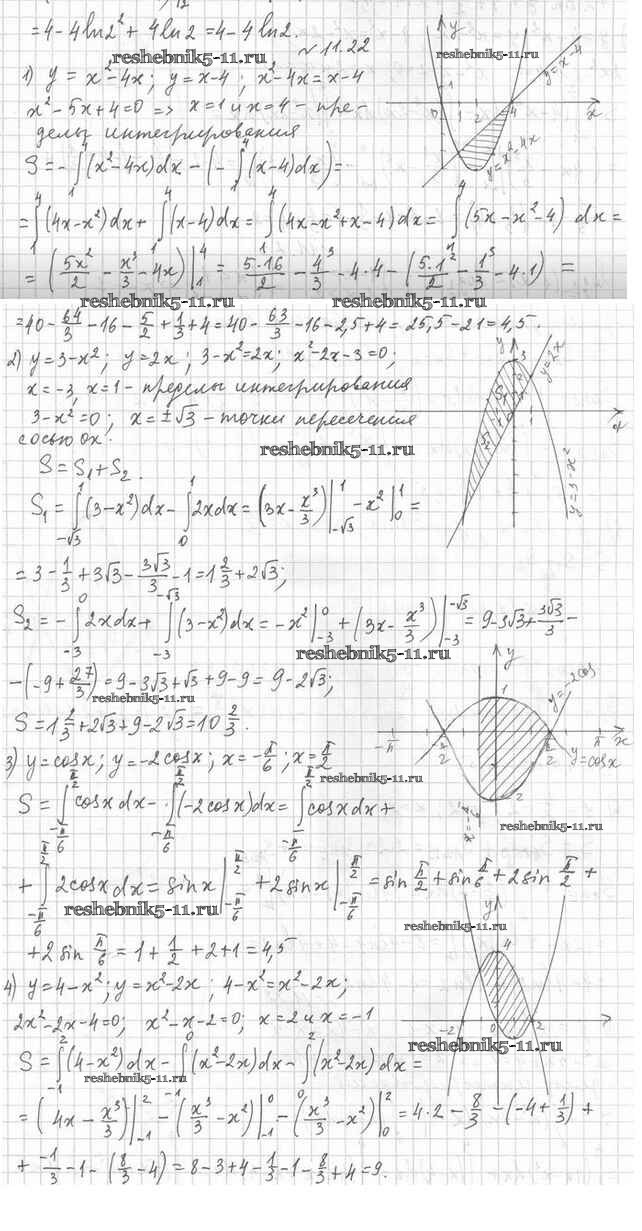 Готовая домашняя работа с ответами по Алгебре за 11 класс Мерзляк, Номировский, Поляков Учебник Алгоритм успеха Углубленный уровень Вентана-граф 2019 ФГОС - §11. Площадь криволинейной трапеции. Определённый интеграл 11.22