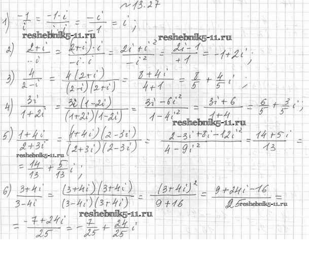 Готовая домашняя работа с ответами по Алгебре за 11 класс Мерзляк, Номировский, Поляков Учебник Алгоритм успеха Углубленный уровень Вентана-граф 2019 ФГОС - §13. Множество комплексных чисел 13.27