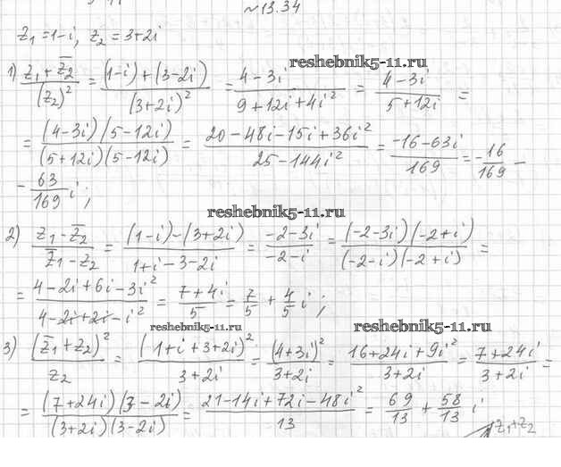 Готовая домашняя работа с ответами по Алгебре за 11 класс Мерзляк, Номировский, Поляков Учебник Алгоритм успеха Углубленный уровень Вентана-граф 2019 ФГОС - §13. Множество комплексных чисел 13.34